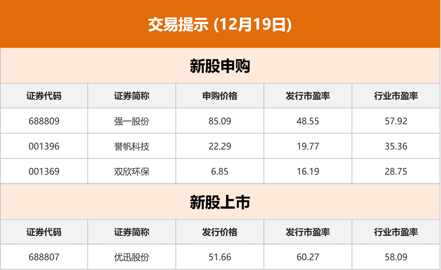 公司新闻OpenAI:当地时间12月18日,据外媒援引知情人士消息,人工智能(AI)巨头OpenAI正在就融资事宜与投资者进行初步谈判,公司的估值或将达到7500亿美元左右,并将成为今年最大的融资交易之一。 南都电源:停牌期间,控股股东与交易对方就筹划控制权变更事项进行了充分探讨,但由于涉及事项较多,经交易各方就核心条款经多次协商和谈判后,仍未达成共识,故决定终止本次控制权变更事项。公司股票自2025年12月19日(星期五)上午开市起复牌。 中微公司:公司正在筹划通过发行股份的方式购买杭州众硅电子科技有限公司(简称“杭州众硅”)控股权并募集配套资金,标的资产估值及定价尚未确定。公司股票自12月19日(星期五)开市起开始停牌,预计停牌时间不超过10个交易日。 海天味业:公司制定未来三年(2025-2027年)股东回报规划,规划指出,公司每年度现金分红总额占当年归属于母公司股东净利润的比例不低于80%。该规划尚需提交股东会审议。同时,公司实行2025年回报股东特别分红预案:每10股派发现金红利3.0元(含税)。 药明康德:公司收到控股股东、实控人的一致行动人G&C IVHongKong Limited、G&C V Limited、G&C VI Limited、G&C VII Limited等18家股东通知,上述股东于11月26日至12月17日通过集中竞价和大宗交易方式合计减持公司股份2950.88万股,占本公告日公司总股本的0.989%。 山东高速:公司根据相关会计准则及政策,拟在2025年度对联营企业东兴证券对应的长期股权投资计提减值准备,预计减值准备金额约为6.9亿元,预计导致公司2025年度合并报表利润总额减少约6.9亿元。 立达信:公司于2025年12月17日收到股东李春华《关于减持股份触及1%刻度暨减持计划实施完毕的告知函》,其于2025年12月10日至12月17日期间,通过集中竞价交易方式减持公司股份500万股、通过大宗交易方式减持公司股份281.58万股,合计占公司总股本的1.56%。 四川路桥:中邮人寿保险股份有限公司于2025年12月17日通过二级市场买入股票的方式增持公司114,300股,占公司总股本的0.0013%。增持后,中邮保险持有四川路桥4.35亿股,占公司总股本的5.00%。 信科移动:公司聚焦“空天地一体化”战略,具备星载基站、星载相控阵天线、地面信关站、专用终端、核心网、网管以及测试仪表等系列产品和技术服务能力,是我国卫星互联网产业的先行者和重要参与者,深度参与了我国低轨卫星互联网的在轨验证和组网建设。 博盈特焊:美国燃气轮机的市场需求显著提升。作为燃气轮机的核心换热设备,公司生产的HRSG能够高效回收燃气轮机排放的高温废气,同时产生蒸汽,驱动二次发电,提升电厂的发电效率,成为满足美国市场电力需求的可靠技术选择。 >">点击查看更多上市公司重大公告>> 环球市场![]() 特朗普商业帝国再扩张:当地时间周四,特朗普媒体与科技集团(DJT)已同意与一家获得Alphabet支持的核聚变能源公司进行全股票交易合并,交易总价值超过60亿美元。此次合并将使双方共同建设一系列大型聚变发电厂,以满足人工智能(AI)浪潮带来的能源需求。DJT股价周四大幅飙升,涨幅超过40%。根据协议,交易完成后,特朗普旗下的媒体公司与TAE Technologies的股东将各自拥有合并后公司约50%的股份。交易预计于2026年年中完成,每股TAE股票定价为53.89美元。 美联储主席人选将在未来几周内公布:美国总统特朗普表示,他在面试“三到四位”美联储主席候选人,并预计将很快决定提名谁来接替鲍威尔。“我认为他们每个人都会是很好的选择,”特朗普说。特朗普表示,他不确定是否会在年底前宣布人选,但将会在“未来几周内”公布。特朗普曾暗示心中已有答案,他在本月早些时候称“我已经非常清楚我想要谁了”。尽管如此,特朗普周四称赞了数位候选人。当被问及美联储理事克里斯托弗·沃勒时,他表示双方周三再次会面,并称其“很棒”。特朗普说:“我的意思是,他在那儿很久了。”特朗普还称赞了美联储负责监管的副主席米歇尔·鲍曼,但并未明确其是否进入最终候选名单。 拉加德称货币政策处于良好位置:在欧洲央行今年最后一次管委会会议结束后发表讲话时,拉加德指出,管委会一致决定维持三大关键利率不变,并称当前货币政策“处于一个良好的位置”。不过,她明确表示,这一评估并不意味着利率将沿着固定或可预测的路径运行。 白宫官员盛赞11月CPI:当地时间周四(12月18日),白宫国家经济委员会主任凯文·哈西特对最新公布的消费者价格指数(CPI)报告表示赞赏,并称美国经济正呈现出高增长、低通胀的态势。 OpenAI抢占美国高校:根据媒体查阅的采购订单,OpenAI已向约35所公立大学出售了超过70万份ChatGPT授权,供学生和教职员工使用。相比之下,微软公司通常将其Copilot助手与现有软件打包提供,在这些学校中的推广进展较为缓慢,而且更多是教师在用,学生使用率较低。 交易提示![]() 点击立即参与申购>> 债市纵览Shibor:12月18日,隔夜shibor报1.2730%,下跌0.20个基点;7天shibor报1.4260%,下跌0.20个基点;14天shibor报1.5820%,上涨11.10个基点;1月shibor报1.5500%,上涨0.90个基点;3月shibor报1.6030%,上涨0.20个基点。 欧债:欧市尾盘,英国10年期国债收益率涨0.7个基点,报4.482%。德国10年期国债收益率跌1.4个基点,报2.850%。法国10年期国债收益率跌1.9个基点,报1.556%,北京时间19:02刷新日低至3.539%。两年期法债收益率跌0.2个基点,报2.333%,也曾在新闻发布会开始后刷新日高至2.365