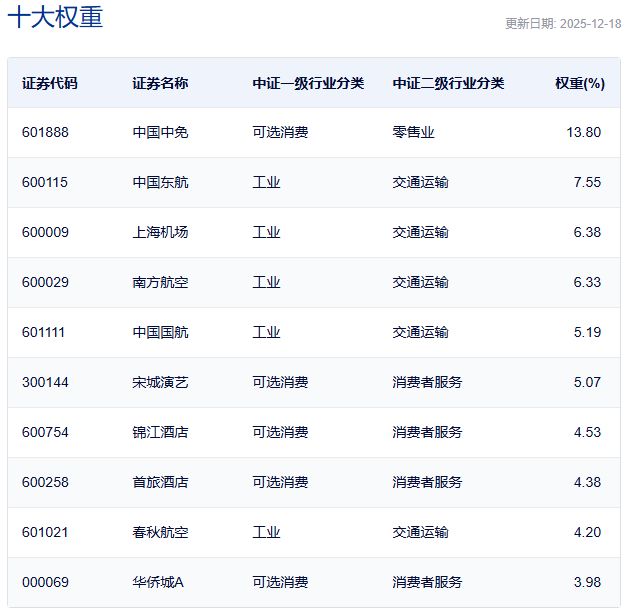中证旅游主题指数主要权重股 封面图片来源:每日经济新闻 |