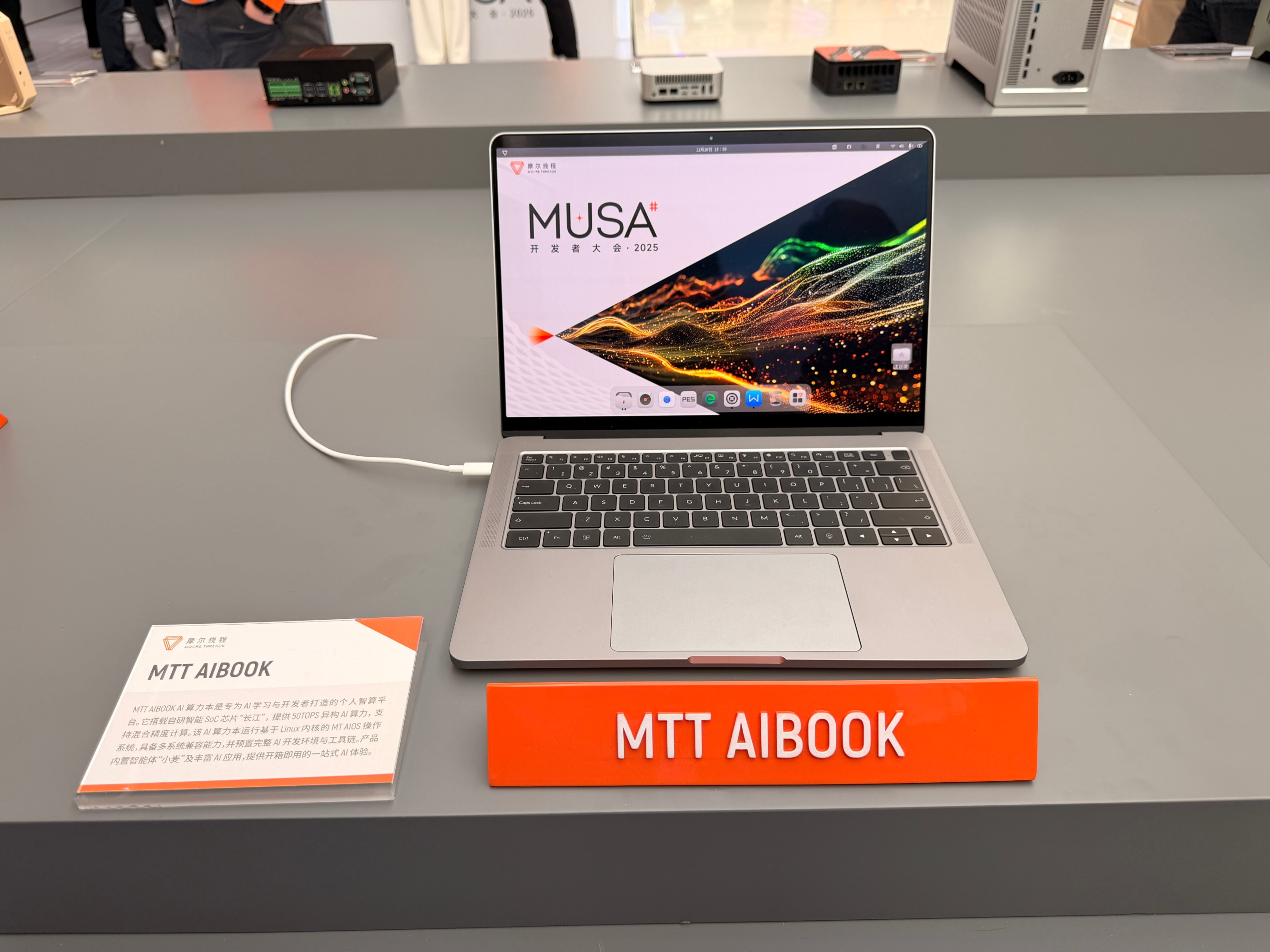 专业金融数据,下一代智能终端 12月20日至21日,摩尔线程首届MUSA开发者大会(MDC 2025)在北京开幕。这是其上市后的首次公开亮相。摩尔线程创始人、董事长兼CEO张建中把从架构到集群的全栈技术等“全家桶”摆到台前,集中发布了一系列以自主MUSA统一架构为核心的全栈技术成果。 其中,最受关注的是摩尔线程新一代全功能GPU架构“花港”。界面新闻记者了解到,花港支持FP4到FP64的全精度计算,算力密度提升50%,效能提升10倍,可支持十万卡以上规模的智算集群。 ![]() 图片来源:摩尔线程 在张建中给出的路线图里,花港被定义为下一代全功能GPU架构的底座。未来,摩尔线程将推出两款基于该架构的GPU芯片,包括高性能AI训推一体的“华山”芯片和专攻高性能图形渲染的“庐山”芯片。 同步发布的还有夸娥万卡智算集群(KUAE2.0)。张建中披露了其在万卡规模下的关键效率指标,包括训练算力利用率MFU在Dense大模型上达60%、在MoE大模型上达40%,有效训练时间占比超过90%,训练线性扩展效率达到95%。 在推理侧,摩尔线程联合硅基流动,基于MTT S5000运行DeepSeek R1 671B全量模型,单卡Prefill吞吐突破4000 tokens每秒、Decode吞吐突破1000 tokens每秒。 此外,张建中还发布了面向下一代超大规模智算中心的MTT C256超节点架构规划,并提及在具身智能、科学智能(AI4S)、AI for 6G等领域的深度布局计划。 ![]() 图片来源:摩尔线程 更贴近开发者日常的变化,来自一台算力笔记本。 摩尔线程这次还发布了一款面向开发者的AI算力笔记本MTT AIBOOK。该笔记本搭载摩尔线程自主研发的智能SoC芯片“长江”,提供50 TOPS异构AI算力,支持混合精度计算,运行基于Linux内核的MT AIOS操作系统,具备多系统兼容能力,预置完整AI开发环境与工具链。 界面新闻记者了解到,目前,这款笔记本已在京东开放预售,32GB、1TB的版本预售价为9999元。 一名摩尔线程研发人员向界面新闻记者表示,这款面向AI开发者的算力本,同时也是把端侧产品化跑通的全链路验证。 “如果新芯片出来,连自家都没有从头到尾验证一遍,合作伙伴往往也会谨慎使用,我们用AIBOOK把硬件、驱动、软件栈、工具链与系统打包到一台设备里,让合作伙伴看到‘证明是可以用的’,导入节奏也会更稳。”研发人员向界面新闻记者表示。 对摩尔线程这类的GPU厂商而言,开发者与个人市场的入口,往往也是更容易推进生态扩张的一条路。 ![]() 图片来源:界面新闻记者摄 硬件之外,软件栈与开发者习惯往往决定生态扩张速度。 英伟达将CUDA定义为并行计算平台与编程模型,围绕它形成了长期积累的工具链和开发者社区。公开信息显示,截至去年6月,全球CUDA开发者规模约为500万人。英伟达官网信息显示,CUDA累计下载量已超过5300万次。 与之对标,MUSA覆盖从芯片架构、指令集、编程模型到运行库与驱动框架的全栈体系,本次升级到5.0版本。 张建中给出了更具体指标,muDNN的GEMM与FlashAttention效率超过98%,通信效率达到97%,编译器性能提升3倍,并计划逐步开源计算加速库、通信库与系统管理框架等组件。 “生态体系是GPU行业的核心护城河与价值所在,依托MUSA架构的优势,我们会持续加大研发投入,攻克从硬件到软件的核心技术挑战,深化与生态伙伴的协同,共同构建自立自强的国产计算产业生态。”张建中说。 ![]() 图片来源:摩尔线程 实际上,摩尔线程这条全栈路线本质上是用软件生态去放大硬件竞争力。 TrendForce在2025年10月的分析中预计,全球AI服务器出货量在2026年仍将保持两位数增速,供给与生态继续向头部集中。IDC的相关信息也显示,2025年上半年中国加速服务器市场规模约160亿美元,并保持增长态势。 随着推理负载占比上升,算子、通信与编译器的工程化能力开始与芯片峰值参数同等重要,这也是厂商把软件栈与集群工程放到同一张路线图上的原因。 在需求上行与供给约束并存的环境下,国产GPU公司更需要用可持续的软件栈、规模化交付与工程能力进入主流产业链。 此外,张建中还披露了目前摩尔学院的发展进度,截至今年12月,其AI开发者社区与学习者规模接近20万人,覆盖200多所高校,并吸引超过10万名学子参与,“我们希望聚集所有的能力能够共同去打造国产GPU的生态。” ![]() 图片来源:摩尔线程 多位摩尔线程的合作伙伴在接受界面新闻记者采访时都提到,接入生态的第一关仍是适配与工程细节。 一位合作伙伴向界面新闻记者表示,张建中在台上谈差距“很坦诚”,现实里大家最直接的体感是,与国际主流产品相比,国内在性能与生态上大约还差“1到2代”。 其向界面新闻记者表示,实际的推理场景未必需要追到最顶配的配置,现阶段“够用”和“划算”这两点对不少客户更重要。 另一位合作伙伴则在接受界面新闻记者采访时表示,CUDA生态“几十万人用了很多年”,迁移到MUSA时,业务方最希望的是工具链更顺、适配覆盖更广,但这类工作极其消耗人力,需要厂商持续投入。 无论是合作伙伴的现场反馈,还是张建中的公开表述,大家并不避讳公开谈现实问题——与国际主流产品相比,国内在性能、生态与工程积累上仍存在差距。 张建中表示,希望利用全功能GPU建立这样的基础设施,“为各行业的科研工作者和科技开发者,让他们有条件做得更好。” 对摩尔线程而言,上市只是走到了国产GPU赛道的前列。接下来,如何把技术路线图转化为交付能力,并在生态构建上直面国
