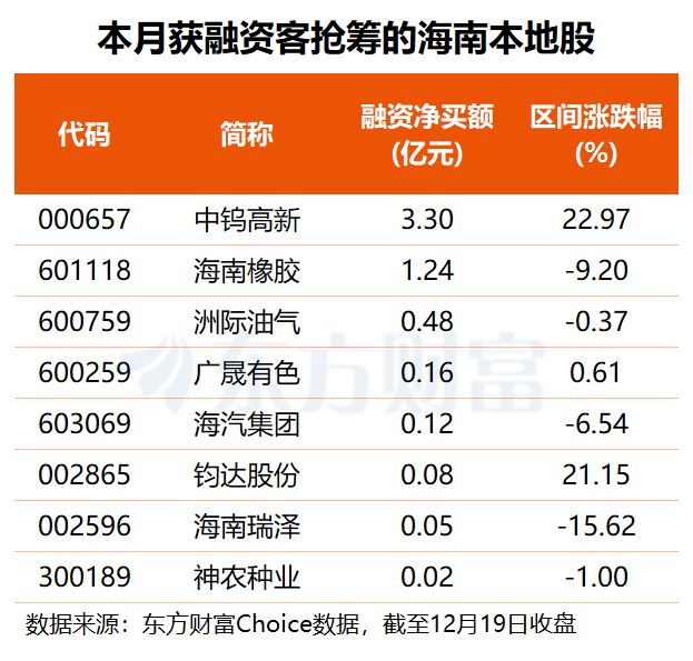 A股三大股指早盘高开高走,截至午间收盘,沪指涨0.64%,深成指涨1.36%,创业板指涨1.80%。 量能方面,两市半天成交1.19万亿元,较上一交易日同期放量近千亿元;全市场共计3490股飘红,92股涨停,封板率超77%。 板块方面,海南板块飙升领涨,算力硬件方向集体走强,免税概念、光刻胶、无人驾驶、贵金属、人形机器人等板块反复活跃,医药商业、教育、租售同权、影视概念等表现偏弱。 ![]() 封关落地 海南板块掀涨停潮 海南板块早盘持续冲高,27只个股全线飘红,康芝药业、神农种业20cm涨停,海南瑞泽、洲际油气、海峡股份等十余股亦封板。 消息面上,12月18日,海南自由贸易港全岛封关运作正式启动,进口征税商品目录、货物流通税收政策、禁限清单、加工增值内销免关税政策、海关监管办法等一系列封关政策及配套文件同步实施,海南全岛8个对外开放口岸及10个“二线口岸”监管设施悉数启用。 据海口海关统计,封关首日,海关监管“一线”进口“零关税”享惠货物3.6亿元,主要为原油、航空器材、医疗设备等;监管进口放宽贸易管理措施货物34.7万元,主要为“两头在外”保税维修医疗设备。 三亚市商务局数据显示,封关以来,三亚免税销售额已连续3日破亿元。其中,12月18日封关首日,三亚全市免税销售额达1.18亿元;12月19日,三亚全市免税店单日销售额达1.05亿元,同比增长45.8%;12月20日,单日销售额达1.08亿元,同比增长47%。今年以来,三亚免税销售额累计已突破200亿元。 中信建投证券认为,政策红利下,海南有望成为产业迁移的热土,高端制造、航空物流、数字经济等产业或将在海南集聚,形成新的经济增长点。同时,海南通过放宽免签政策、优化旅游环境等措施,有效拉动境外消费,提升国际旅游消费中心地位。 天风证券表示,《海南自由贸易港鼓励类产业目录(2024年本)》中新增文化旅游、新能源、医药健康、航空航天、生态环保等多个领域,对于注册在海南自由贸易港并实质性运营的鼓励类产业企业,享有税收优惠。在此政策框架下,建议关注海南文化旅游、交通运输、基建建设、生物医药、矿产能源、农牧等相关领域。 东方财富Choice数据显示,12月以来,共有8只海南本地股获融资净买入,其中,中钨高新获融资客大举抢筹3.3亿元,海南橡胶融资净买额达1.24亿元,洲际油气也获杠杆资金加仓约4796万元。 ![]()