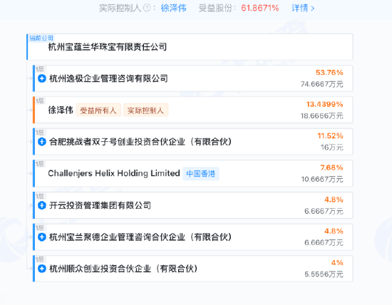 起底m:融资主体今年成立,“企二代”徐泽伟挑大梁 中国高端黄金珠宝品牌“m”近日宣布完成A轮融资,领投方为挑战者创投,顺为资本以及开云集团也参与了跟投。 根据天眼查,顺为资本的法人为小米集团董事长雷军,挑战者创投的法人为唐彬森,而唐彬森更为人所知的身份,是元气森林创始人。开云集团则是全球奢侈品集团,旗下坐拥古驰(Gucci)、圣罗兰(Saint Laurent)、葆蝶家(Bottega Veneta)、巴黎世家(Balenciaga)等众多品牌,与LVMH同属全球三大奢侈品集团之一。 为什么行业大佬、奢侈品巨头,会去押注一家知名度不高的“小众”品牌? 与公众印象中的“创业新品牌”不同,m的历史可以追溯到更早。公开信息显示,品牌起源于1988年,创始人徐毕东在古法黄金尚未被市场重视的年代,便认准了“花丝镶嵌”的价值,他在当年北京花丝镶嵌厂解散之际,吸纳了多位国家级非物质文化遗产“花丝镶嵌”技艺的传承大师及其弟子。 2008年,徐毕东在位于杭州城西的西城广场成立杭州鼎福珠宝有限公司(目前已注销),后又于次年注册杭州鸿通贸易有限公司,注册资本618万元,由其持股94%和陈梅兰持股6%,两人共同管理,并陆续注册了50余件“m”“BORLAND”相关商标,业务覆盖珠宝、工艺、美陈与文化类产品。 m(Borland)品牌的实体化运营始于2017年杭州大厦首店的开业。次年(2018年),创始人徐毕东正式将m品牌化,并注册成立了运营主体――杭州宝兰黄金文化发展有限公司,注册资本为2000万元。 目前,品牌的经营管理或已完成代际交接。徐毕东之子徐泽伟作为“二代接班人”,已成为公司的核心管理者与主要股东。他直接持有杭州宝兰黄金文化发展有限公司90% 的股份,并担任法定代表人。 ?此外,徐泽伟还担任新成立的融资主体杭州宝蕴兰华珠宝有限责任公司的董事长,该公司在今年8月28日注册,注册资本为138.88万元,徐泽伟在该公司担任董事长及法定代表人,并持有约60% 的股份。这一架构也表明,徐泽伟或已全面掌舵m品牌的现有业务与未来资本化发展。