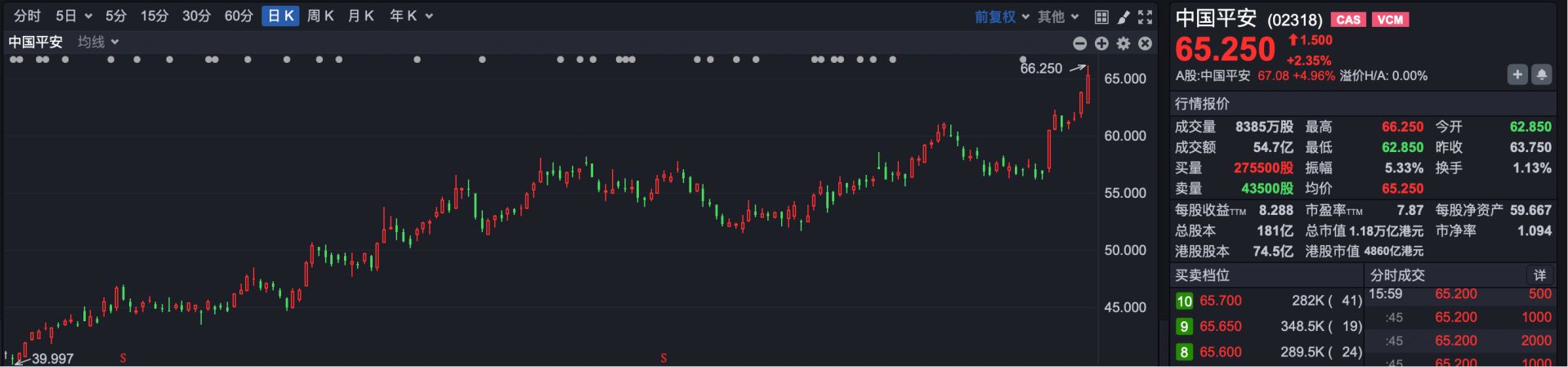个股方面,保险股成为市场少有的亮点。其中,中国平安A股(SH601318)大涨近5%,H股(HK02318)涨超2%,再创近4年新高。此外,新华保险(HK01336)涨超4%,中国太保(HK02601)、中国太平(HK00966)涨超2%。