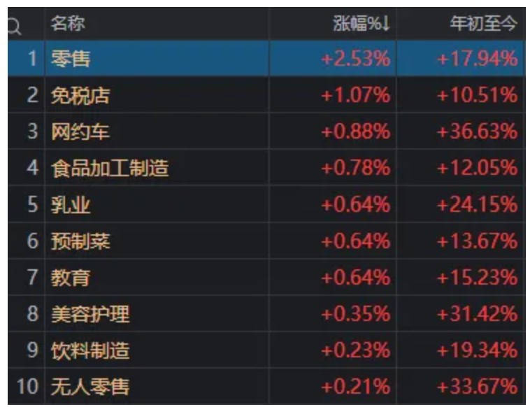 历史经验显示,每逢年末,资金有回笼以及出于业绩确定性考虑,开始流向权重股;微盘股经过大涨,获利盘止盈也相当明显。此外,上市公司即将于明年一季度发布新财报,部分小微盘股存在“ST隐患”也会影响市场情绪。 消费板块继续逆势走强 截至上午收盘,昨日就表现强势的大消费仍是市场主线,并扩散至汽车、多元金融等板块,但它们上午的涨幅也有所回落。