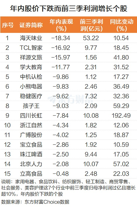 消费股估值处较低位置 除了政策利好带动板块走强外,消费股自身也存在诸多利好因素。比如消费股多数经历较长时间的回调,本身存在技术性反弹的需求。拿年内来说,东方财富Choice数据显示,截至12月15日收盘(以下同),食品饮料是申万一级行业跌幅最大行业,累计下跌7.44%。美容护理也是累计下跌,跌幅为1.72%。商贸零售虽然累计上涨4.5%,但在涨幅排名中十分靠后。 ![]() 还有就是不少消费股龙头的业绩依然坚挺。比如贵州茅台前三季度实现归母净利润646.27亿元,同比增长6.25%。再比如美的集团前三季度净利润378.83亿元,同比增长19.51%。海尔智家前三季净利润173.73亿元,同比增长14.68%。山西汾酒、海天味业、金龙鱼、东鹏饮料等行业龙头公司,业绩也均录得正增长。而五粮液、格力电器、泸州老窖、伊利股份等公司,虽然前三季度业绩同比下滑,但所获得的净利润仍处于A股前列。 再从估值角度来看,以食品饮料板块为例,该指数的最新市盈率(TTM,剔除负值)为20.8倍,市盈率百分位为13.04%。而2021年2月10日当天,该板块的市盈率高达64.12倍。 ![]() 股票大跌+业绩高增长个股 从个股角度而言,不少个股具备“黄金坑”的特征。本文以家用电器、食品饮料、纺织服饰、轻工制造、商贸零售、社会服务、美容护理这7个消费属性较强的行业为样本,筛选出其中前三季度归母净利润过亿且增长超10%,股价年内下跌的个股,如下图所示: 比如海天味业,该股年内累计下跌超18%,而该股前三季度的归母净利润为53.22亿元,同比增长10.54%。TCL智家年内跌超16%,该股前三季度利润为9.77亿元,同比增长18.45%。祥源文旅、学大教育、小熊电器、孩子王等个股,也均是业绩表现较好但年内股价下跌的个股。 ![]() 商务部、中国人民银行、金融监管总局在近日发布《关于加强商务和金融协同更大力度提振消费的通知》。其中提到扩大县域消费,配合“新大集、新服务、新消费”县域商业消费季等活动提供信贷支持。升级农村消费,促进农特产品销售,向农产品产销大会等服务乡村振兴相关展会平台提供特色金融服务。这是提振消费相关措施中首次提到扩大县域消费、升级农村消费。 中邮证券分析师赵洋表示,今年中央经济工作会议将“坚持内需主导,建设强大国内市场”确定为2026年中国经济工作八项重点任务之首,并提出了“深入实施提振消费专项行动,制定实施城乡居民增收计划”等措施。预计后续将有更多提振消费的政策出台,有利于增强投资者对相关消费板块的投资信心。 银河证券则表示,12月上旬食品饮料指数有所回调,我们判断主要原因为月度动销数据环比略有放缓,主要系中秋错期导致节奏略有波动。板块内部来看,11月调整较多的啤酒、调味发酵品、软饮料跌幅较窄。展望2026年,我们仍然维持此前判断,新消费仍具持续性但内部将会轮动,而传统消费有望迎来底部改善。 (文章来源:东方财富研究中心) |