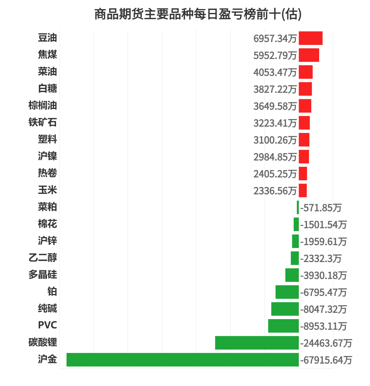 每日期货龙虎榜,带你深度了解市场。 市场一览:周二商品期货综合指数下跌1.6%,日内资金净流出74.78亿元。 市场成交量为3173.62万手,成交额为2.65万亿元。 持仓量为4024.34万手,较前一交易日减少17.08万手。 市场成交量前十和持仓量前十如下图所示: ![]() ![]() ![]() 品种盈亏榜:今日商品期货上榜机构席位中豆油盈利第一,为6957.34万元。 沪金亏损第一,为67915.64万元。 ![]() 注:盈亏数据为对应龙虎榜持仓的估算数据。 您可通过点击丁冬财经期货APP资讯页面“龙虎榜”及丁冬财经期货PC端左侧“龙虎榜”查看各类席位持仓及盈亏榜单信息。点此查看>> ![]() ![]() 本信息来源于丁冬财经Choice数据,相关数据仅供参考,若数据有误,以交易所发布数据为准,不构成投资建议。 (文章来源:丁冬财经研究中心) |