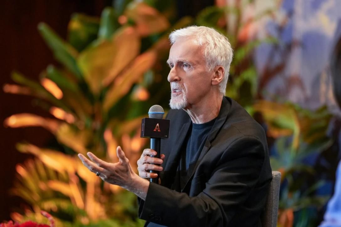 在他的职业生涯中,续集并不是一种常态。《终结者》和《终结者2》之间相隔7年,更像是早期阶段性的延续;《泰坦尼克号》之后,所有关于衍生或续写的讨论,都被他回避;《异形2》《深渊》《真实的谎言》,每一部都以相对独立的形态存在。 《阿凡达》成为少数例外。这是卡梅隆第一次决定,把十几年的时间投入到一个尚未完成的世界之中。 在大师班上,当鲁豫问及《阿凡达》新作中世界观不断扩展的原因时,卡梅隆没有从规模或技术谈起,而是把注意力放在角色与观众之间的连接上。在他看来,无论世界设定多么庞大,故事最终仍会回到一些基础的情感主题。 “我们之所以能让观众与角色产生连接,是因为我们讲述的是普世性主题:家庭、勇气、社区、责任。这些情感并不属于某个国家或文化,而是所有人都能理解的。”他表示,“我们的目标,是让不同国家的观众在看到角色时,不觉得他们‘陌生’,而是能真切感受到那种情感的共通性。” 这种创作取向也与他的个人经验相关。“我自己也是一个父亲。”卡梅隆在现场表示,“我会把生活里的真实情绪带进电影,喜悦、伤痛、希望、恐惧,这些情绪在全世界都一样。” 当电影里的孩子长大,现实也在同步发生从第一部到第三部,《阿凡达》中的苏利一家在故事时间里不断变化,而在现实中,卡梅隆的家庭也经历着相似的阶段。 第一部制作时,孩子们还小;第二部拍摄期间,他们进入青春期,家庭关系随之发生变化;到第三部,孩子们开始为自己的未来作出选择。创作与生活在时间上形成了某种重合。 他看到孩子们在学校中的困惑,在家庭关系中的摩擦,也看到冲突之后逐渐出现的靠近。 “家庭从来不是完美的。每个家庭里都有冲突、误解,甚至彼此看不顺眼的时刻。”卡梅隆坦言。但他同样强调,真正让人难忘的,是人在关键时刻的反应。“当危机真正来临的时候,家人会毫不犹豫地挺身而出,这是我认为最令人动容的人类经验。” 这种经验并非抽象概念。“我在妻子的家庭、我自己的家庭里,都看到这种关键时刻彼此守护的力量。我非常尊敬这种情感,并努力在电影里呈现它。” 随着系列推进,家庭关系在《阿凡达》的叙事中占据着越来越明确的位置。观众看到的,不只是角色如何面对外部世界的变化,也包括他们在关系中的偏离、回归与修复。庞大的世界设定在其中更像一层背景,让人物的选择显得更加具体,也更难回避。 “AI不能代替人类情感,也无法创造真正独特的角色”当话题转向视觉世界的来源时,卡梅隆很自然地回到了“自然”。 他在海底停留的时间,超过许多职业海洋科学家。2012年,他独自驾驶“深海挑战者号”抵达马里亚纳海沟底部,成为第一位完全独自完成这一壮举的人类。 “我在海底待过成千上万小时。从浅海到深渊,每一次下潜都会看到奇迹:像巨型水母一样的透明生物、薄如膜片的未知物种、不断改变颜色的生命体。”卡梅隆回忆道,“当你在海里,看见一个你从未见过的生命时,那种震撼是无法替代的。大自然的想象力总是超过我们所有设计师。” 这些观察后来成为潘多拉生态系统的重要参考。在《阿凡达》的世界设计中,不少生物并非凭空想象,而是对自然界形态、结构与尺度的重新组合。“自然永远是最伟大的艺术家。”他说。 这种对自然的尊重,也延伸到他对技术的态度。在大师班上,他明确表示:“所谓‘传统电影’与‘最新技术’,并不是对立的。技术是为了让演员的表演更真实、更细腻,让观众能更深地沉浸在角色情感里。” “你可以改变模型、改变皮肤纹理,甚至改变眼睛捕捉方式,但如果没有真实的表演,一切技术都没有意义。”在他看来,技术研发最终要回答的问题始终一致:“如何让观众看到更多真实情绪?如何让镜头下的人物更像‘活着’?” 因此,他对“用技术取代演员”保持明确距离。“AI(人工智能)不能代替人类情感,也无法创造真正独特的角色。角色来自两部分:剧本的灵魂,以及演员的生命。” 这种判断,也体现在他对影院的看法上。在短视频与流媒体不断占据注意力的当下,卡梅隆依然认为,《阿凡达3》是一部需要在影院中完成观看的电影。
