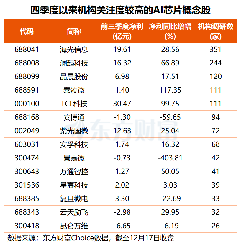 AI芯片竞赛持续升级 据消息人士称,谷歌正在推进一项新计划,使其人工智能芯片在运行全球最流行的AI开发框架PyTorch方面表现更佳,此举旨在挑战英伟达长期以来在AI芯片领域的主导地位。 该计划内部代号为“TorchTPU”,旨在消除阻碍TPU芯片普及的一项关键障碍,即让已经基于PyTorch软件构建技术基础设施的客户,能够在TPU上获得完全兼容、对开发者友好的体验,并考虑将部分软件开源以加速客户采用。 另据媒体报道,亚马逊正在洽谈向OpenAI投资至少100亿美元,该交易将使这家人工智能初创公司的估值突破5000亿美元。 知情人士透露,亚马逊与OpenAI还探讨了电商合作机会,OpenAI希望将ChatGPT打造成购物中心,通过向零售商推荐客户赚取佣金。此外,作为双方拟议协议的关键部分,OpenAI计划采用亚马逊自主研发的Trainium人工智能芯片。 东海证券研报指出,AI投资持续超预期,存储芯片涨价幅度超预期;海外压力下自主可控力度依然在不断加大,目前市场资金热度相对较高,建议逢低布局。 江海证券认为,作为算力的基石,人工智能芯片的性能直接决定了AI模型的水平乃至未来经济的格局。在AI基建持续投入与自主可控战略重要性日益凸显的双重驱动下,预计国产人工智能芯片将迎来广阔的市场空间。 这五股获机构高度关注 东方财富题材板块显示,除了沐曦股份与摩尔线程两只新股,目前A股市场共有36股涉及AI芯片概念,合计总市值约1.90万亿元,近九成个股年内股价实现上涨,其中,禾盛新材以143.63%的涨幅居首,寒武纪也涨约1倍,旋极信息、澜起科技、复旦微电等11股涨幅均在五成以上。 ![]() 业绩方面,近七成AI芯片概念股前三季度业绩实现增长/改善,优博讯、岩山科技、寒武纪净利同比增幅位居前三。 作为硬科技的代表之一,AI芯片概念股们普遍受到机构关注,东方财富Choice数据显示,今年四季度以来,共有14股获得超20家机构集中调研。其中,海光信息机构关注度最高,有351家机构前往调研;澜起科技位居次席,共获244家机构调研;晶晨股份、泰凌微、TCL科技的机构调研数均在百家以上。 澜起科技前三季度实现营收40.58亿元,同比增长57.83%;实现归母净利润16.32亿元,同比增长66.89%。中银证券研报指出,公司经营持续向好,存储基本盘景气度有望持续,且公司逐步完善多元化产品条线,有望进一步打开成长天花板。 晶晨股份前三季度携带自研端侧智能算力单元的芯片出货量已超1400万颗,同比增长超150%;6nm芯片出货量近700万颗,预计全年出货量有望达到1000万颗;W系列出货量超1300万颗,同比增长近70%。东吴证券表示,公司多媒体智能终端芯片业务未来仍有增长潜力,Wi-Fi芯片和汽车电子芯片有望打开第二成长空间。 ![]() (文章来源:东方财富研究中心) |