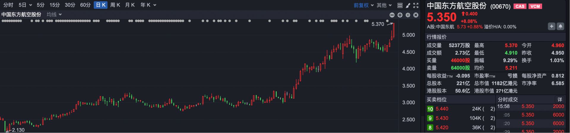 市场热点方面,航空、石油和银行是今日港股最终收红的主因。 航空股方面,中国国航(HK00753)涨超4%,中国南方航空股份(HK01055)涨超5%,中国东方航空股份(HK00670)涨超8%,三大航空股均创出本轮行情新高。国泰海通证券指出,近日管理层再次强调央企应自觉抵制“内卷式”竞争。中国民航以央国企为主,客座率已创历史新高且全球居前,反内卷有望加速收益管理改善与盈利中枢上行。