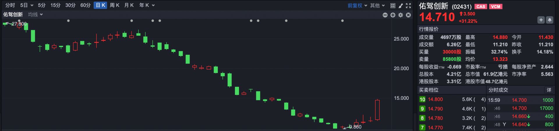 此外,智能驾驶概念股受到市场追捧,佑驾创新(HK02431)涨超31%。 消息面,12月15日,工业和信息化部正式公布了我国首批获得L3级有条件自动驾驶车型准入许可的企业及车型,长安汽车和北汽蓝谷成为首批获此殊荣的企业。这一举措标志着我国L3级自动驾驶汽车从测试验证阶段向规模化商业应用迈出了关键一步。