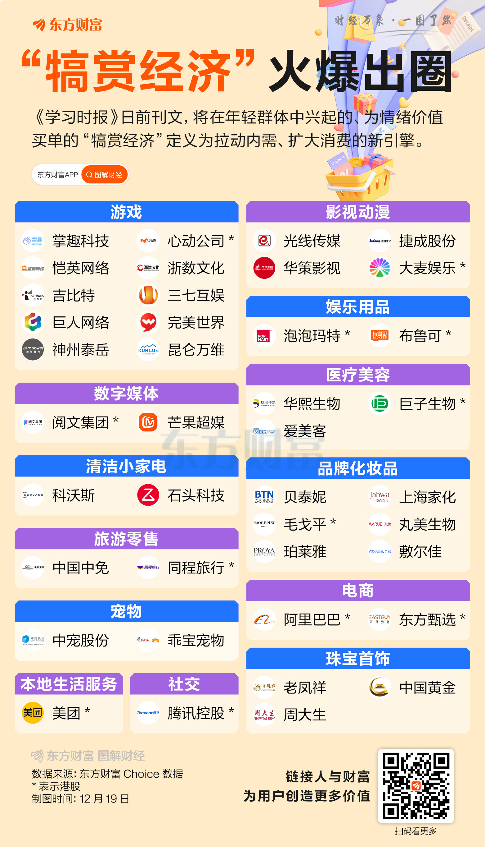 ![]() 《学习时报》日前发表文章《何为“犒赏经济”》,引发了市场的广泛关注。文章表示,所谓“犒赏经济”,是指消费者在面对工作生活压力或特定的心理需求时,通过购买价格在承受范围内的非必需品或体验服务,以获取即时性愉悦感、自我确认感和心理疗愈的一种经济活动。 据市场观点,一些细分行业精准对接了自我犒赏需求,完美契合犒赏经济定义。例如游戏、影视动漫、网络文学、及盲盒潮玩等行业提供了丰富的内容娱乐体验;清洁小家电解放双手,营造整洁舒适的宅家氛围;旅游、医疗美容与品牌化妆品等满足了对自我形象提升与外部环境的追求;宠物、珠宝首饰等领域,亦通过情感陪伴或品质消费提供了心理慰藉。 《学习时报》指出,从产业发展的角度来看,“犒赏经济”的蓬勃发展,不仅重塑了消费端的行为模式,也对供给侧提出了更高要求,能够有效推动产业结构转型升级、激发市场活力,从而拉动内需。以“犒赏经济”中备受欢迎的潮玩商品为例,据《中国潮玩与动漫产业发展报告(2024)》预测,中国潮玩产业的市场规模将保持较快的增长,在2026年达到1101亿元,展现出巨大的市场潜力。