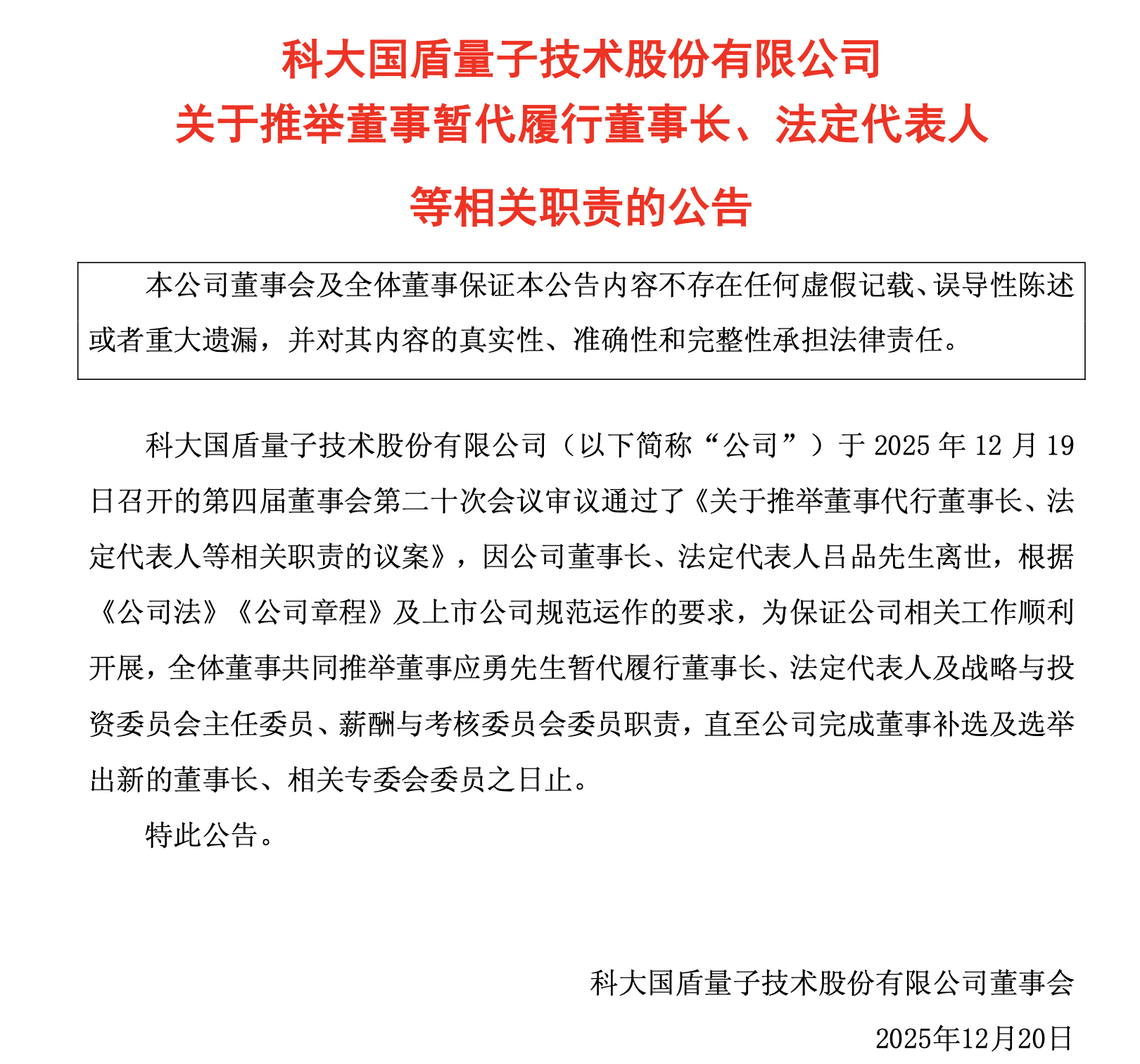 全新妙想投研助理,立即体验 12月19日晚间,国盾量子发布公告称,因公司董事长、法定代表人吕品先生离世,全体董事共同推举董事应勇先生暂代履行董事长、法定代表人及战略与投资委员会主任委员、薪酬与考核委员会委员职责,直至公司完成董事补选及选举出新的董事长、相关专委会委员之日止。 资料显示,应勇出生于1968年5月,中国国籍,无永久境外居留权,硕士研究生学历。其曾于2023年7月至2025年5月担任国盾量子董事长。 ![]() 国盾量子同日(12月19日)晚间还公告称,拟与曲泉(武汉)科技有限公司(下称:“曲泉科技”)签订1份采购服务合同,委托其研究开发“国盾量子EDA软件”并提供相关技术服务,预计金额为870万元。 根据目前公开消息得知,这也是国盾量子首次公开宣布研发EDA软件。 公告显示,曲泉科技为国盾量子的关联方,国盾量子持股30%。该公司成立于2024年4月19日,注册资本100万元,法人代表黄冲,住所在武汉光谷宜科中心。 曲泉科技主要从事量子计算及通用量子技术的开发、应用、咨询、系统集成服务等业务,致力于推动量子计算相关技术的发展,服务国家战略需求。 EDA是指利用计算机辅助设计软件来完成超大规模集成电路芯片的设计方式,它能使芯片设计的效率得到数百倍提升,其亦被称为芯片的“工业母机”。在量子计算时代,中国必须要有自己的Q-EDA软件,作为撬动量子芯片大规模生产制造的关键“杠杆”。 作为全球极少数在量子通信、量子计算、量子测量三大方面均具备规模化产业化能力的公司,国盾量子的核心业务已从量子通信拓展至超导量子计算机整机及测控系统。而国盾量子之所以布局EDA软件领域,亦与EDA软件与集成电路设计密切关系有关。 《科创板日报》记者注意到,芯片设计离不开EDA软件,EDA是指利用计算机辅助设计软件来完成超大规模集成电路芯片的设计方式,它能使芯片设计的效率得到数百倍提升,而传统的EDA软件龙头均为国外企业。 实际上,国盾量子并不是第一家进军EDA软件领域的量子科技公司。 今年5月,本源量子成都子公司-本源科仪(成都)科技有限公司推出的Q-EDA“本源坤元”已完成第五次迭代,并支持超导与半导体双平台设计。“本源坤元”最早于2022年发布,是国产首个量子芯片设计工业软件(即:Q-EDA)。 完成五次迭代升级后,以72比特量子芯片设计为例,“本源坤元”在PDK(工艺设计套件)支持下,已实现自动化一站式快速版图生成——仅需6分50秒即可完成72比特芯片的完整版图绘制。 此外,2023年4月,深圳量旋科技有限公司发布量子芯片EDA天乙,旨在为研究人员和工程师提供高效、智能、易用的量子芯片设计和仿真工具。凭借天乙EDA高效智能的芯片设计能力,实现超导量子芯片的快速迭代和工艺优化。 民生证券此前研报显示,目前全球量子计算软件体系处于开放研发和生态建设早期阶段。 其中涉及到EDA方面,主要用于实现量子芯片的自动化设计、参数标定与优化、封装设计等功能;未来,量子计算芯片EDA软件需要在芯片性能验证、设计自主程度、设计效率等方面持续研究和完善。 ![]() 想炒股,先开户!选丁冬财经证券,行情交易一个APP搞定>> (文章来源:科创板日报) |
