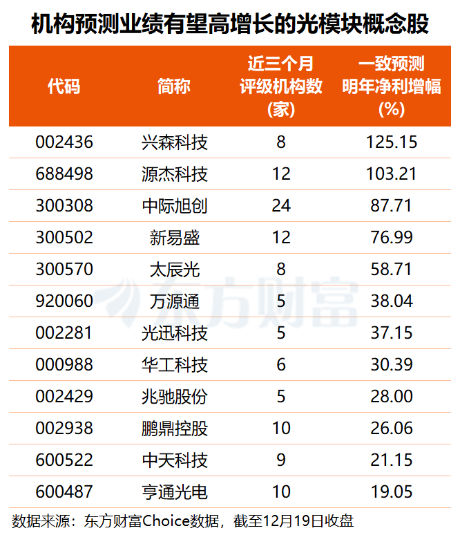 光芯片迎突破 算力硬件股全线大涨 算力硬件方向早盘集体强势,CPO概念、存储芯片、PCB、液冷概念、高速铜缆等分支均走势造好,长飞光纤、亨通光电、杭电股份等多股涨停,长芯博创、上海新阳、凯格精机等涨超10%,新易盛、中际旭创、北方华创、胜宏科技等齐走高。 消息面上,据上海交通大学消息,该校科研人员近日在新一代光计算芯片领域取得突破,首次实现了支持大规模语义媒体生成模型的全光计算芯片。相关成果12月19日发表于《科学》杂志。 团队表示,LightGen之所以实现性能飞跃,在于其在单枚芯片上同时突破了“单片上百万级光学神经元集成”“全光维度转换”“不依赖真值的光学生成模型训练算法”三项关键瓶颈,使得面向大规模生成任务的全光端到端实现成为可能。 高盛发布2026年全球股市展望称,当前科技板块的主导地位并非由AI单一因素驱动,而是始于金融危机后,由持续的盈利增长支撑,且当前估值并未达到历史泡沫水平。2026年,AI红利将进一步扩散,受益范围从核心科技巨头延伸至更广泛的行业与企业,尤其是那些能利用AI及相关技术提升利润率和生产力的企业。 兴业证券表示,展望2026年,海外算力有望进入“空中加油”新阶段:从2026年海外算力光模块订单指引、英伟达GPU在手订单以及北美CSP厂商资本开支指引来看,算力基础设施投入节奏仍未放缓,在过去三年高增长基础上有望实现增速提升。光模块及配套产业链或存在预期差,Blackwell推动数据中心进入“加速兑现期”,Rubin进展顺利,1.6T光模块明年有望成为主力需求,龙头公司明年业绩有望维持高增长。 东方财富Choice数据显示,近三个月共有12只光模块概念股获得五家及以上机构评级,其中,有24家机构对龙头股中际旭创给出投资评级,新易盛、源杰科技均获12家机构评级,鹏鼎控股、亨通光电也都有10家机构覆盖关注。 盈利预测方面,机构预计兴森科技、源杰科技2026年净利或翻倍式增长,中际旭创、新易盛明年业绩也有望实现80%左右的显著增长。 ![]() (文章来源:东方财富研究中心) |